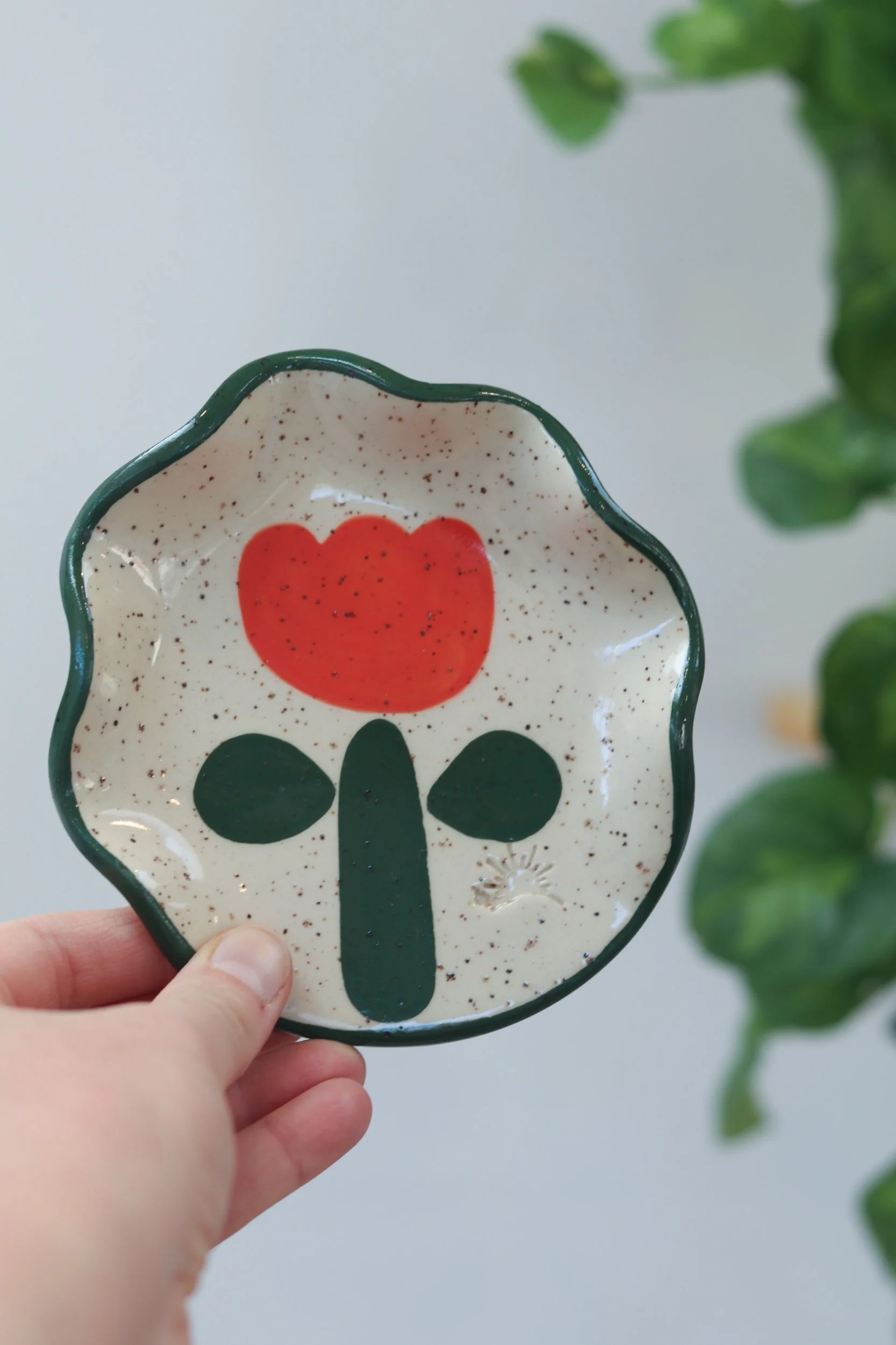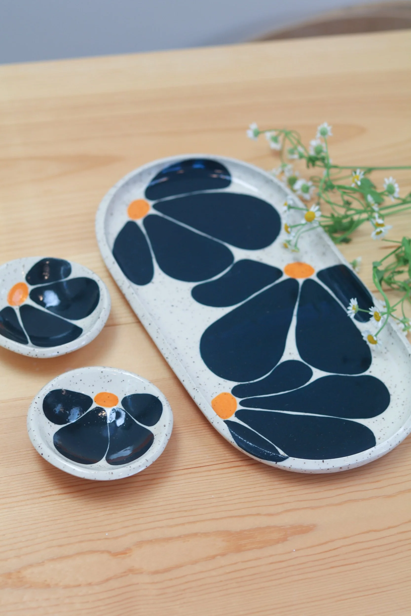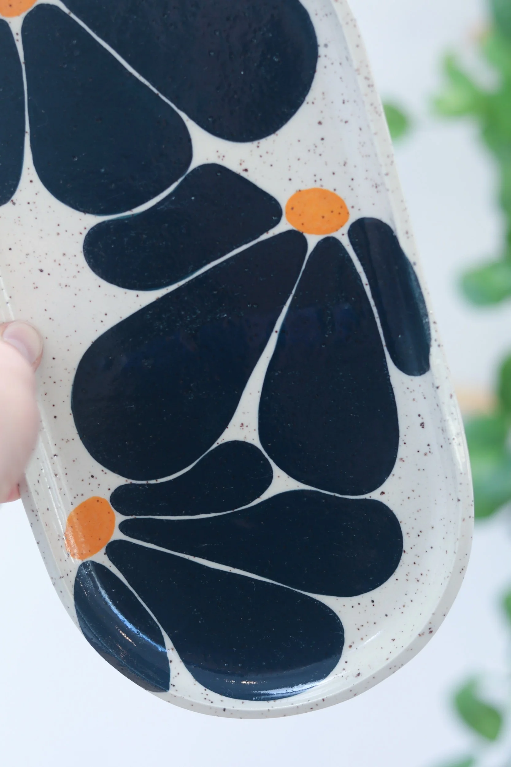 This hand-painted spoon rest is perfect for SO many things! From a spoon rest next to your stove, to a little dish for spices… it’s great for the kitchen. This piece also work well as a tea bag dish to accompany your favorite Cedar Sun tumbler. The best part, throw it in the dishwasher when it’s dirty! The Floral Picnic Collection was inspired by a modern take on vintage botanical dish-ware sets, and features bold colors.