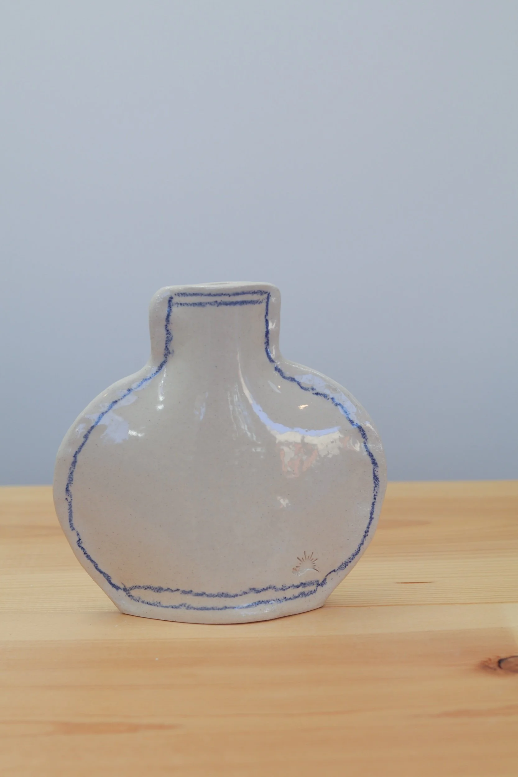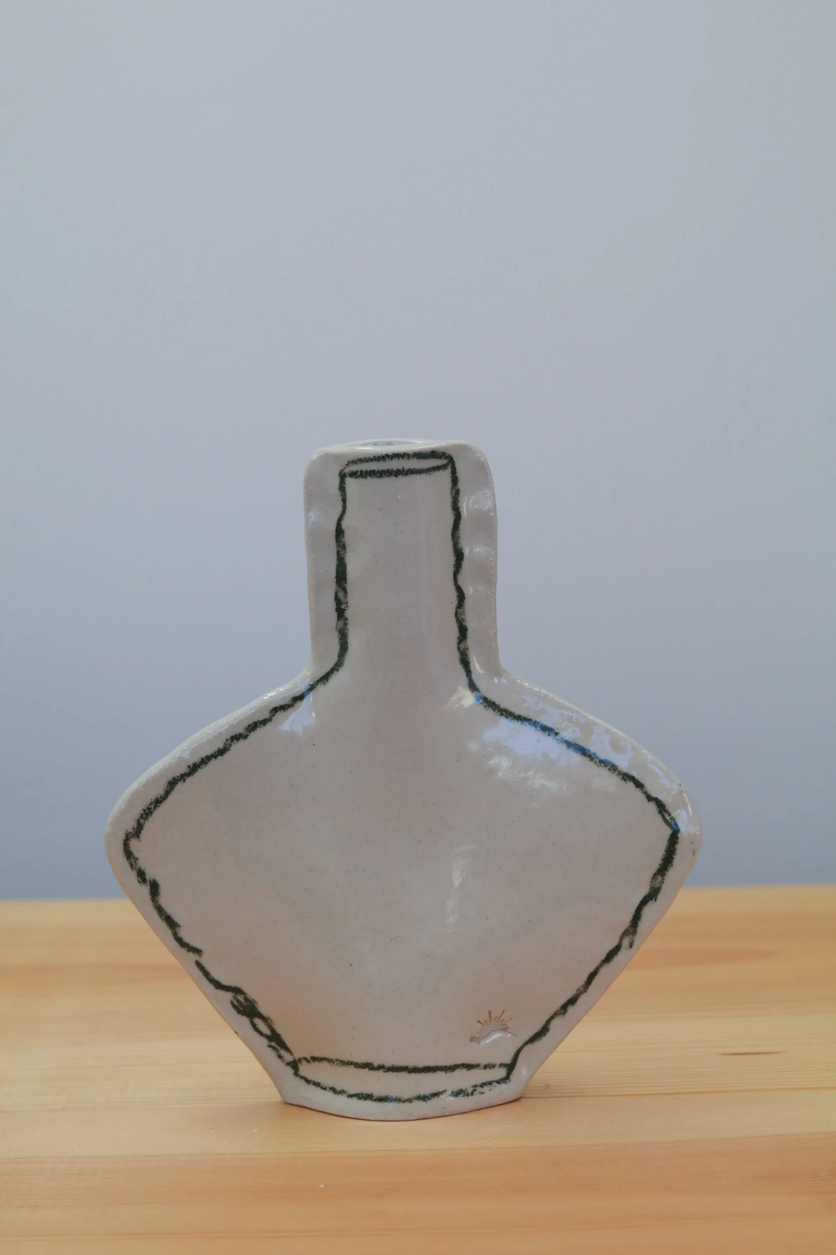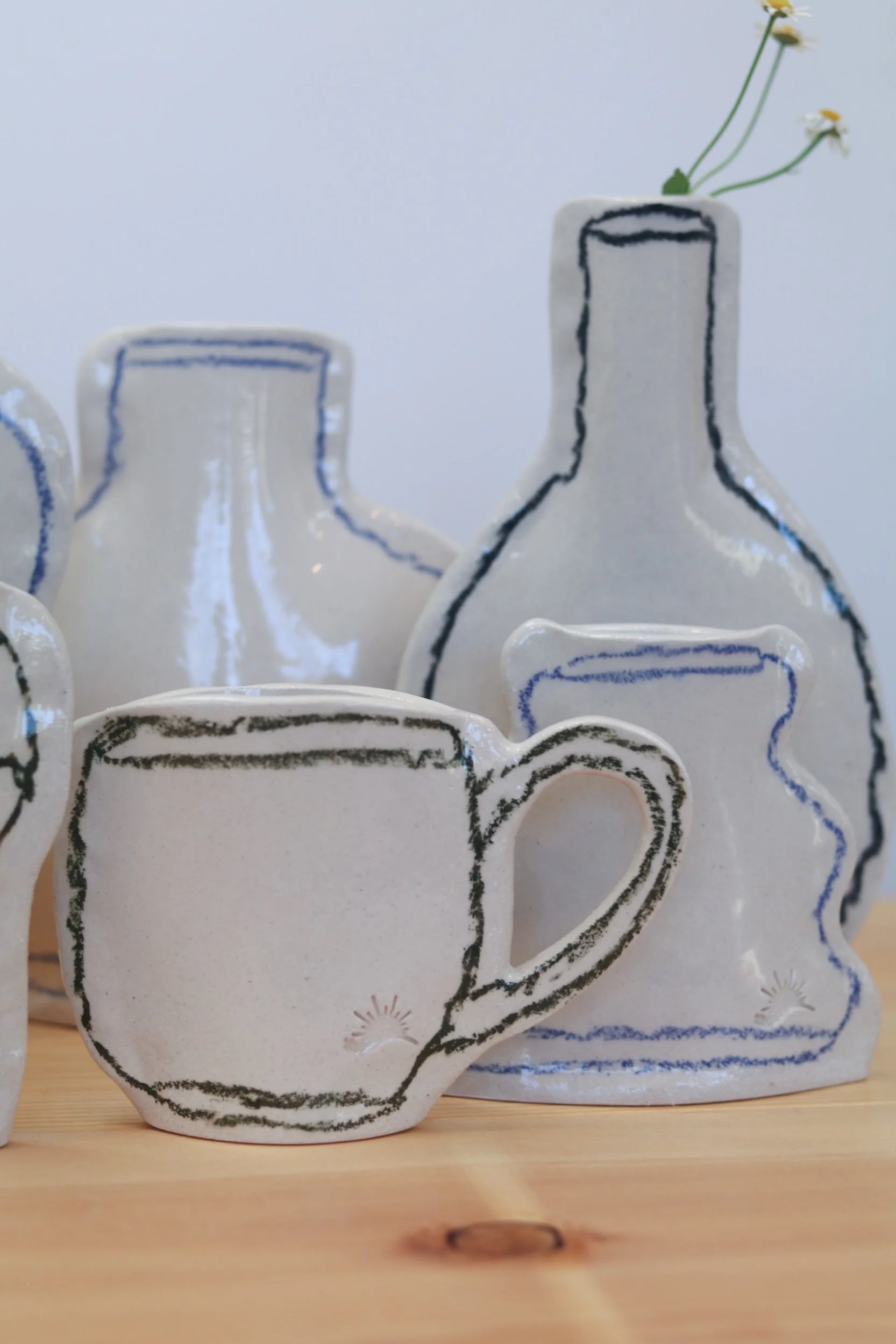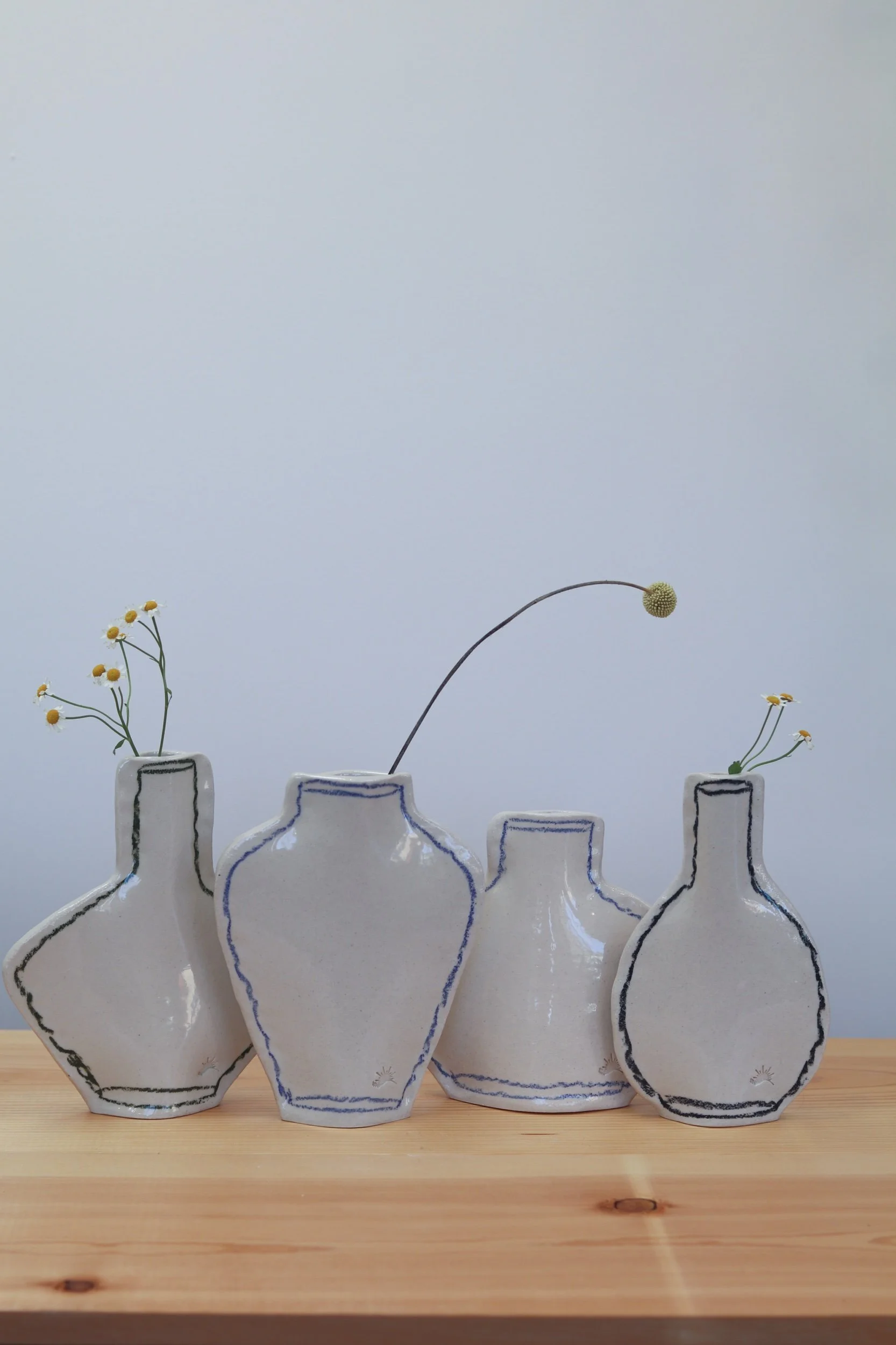 The pocket vase collection was made for everything from a little collection of fresh florals to plant propagations. Fully glazed, these pieces can hold water as long as your favorite glass! The thin profile makes them the perfect addition to a windowsill or a bookcase. Each piece is hand-drawn using an oil pastel made especially for the high firing temperatures of pottery.